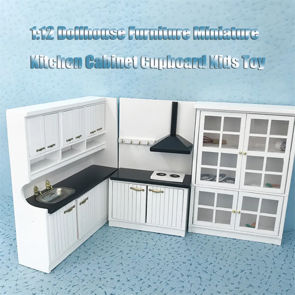 HOT Sale 1:12 Dollhouse Furniture Miniature Kitchen Cabinet Cupboard Kids Toy Play Furniture Toy Doll House